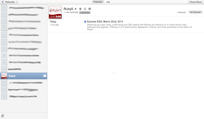 Today I found my first major gripe. I stumbled upon a podcast named Ruby5, which is (aptly) about Ruby programming. I gave it two minutes before I realized that it wasn't what I expected, and I immediately unsubscribed.